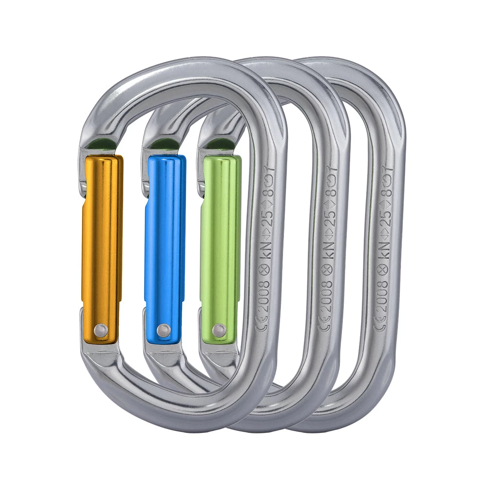 Available in 3 different colours. This classic O-shaped carabiner can be used for a large variety of purposes. It also lets you rack your nuts or other protection according to the gate colour which is very convenient. For example, the yellow gate could be for small nuts, green for big nuts and blue for offset nuts.